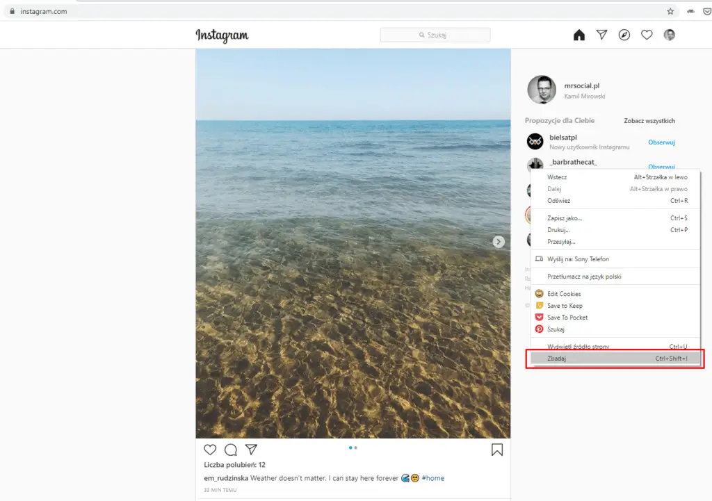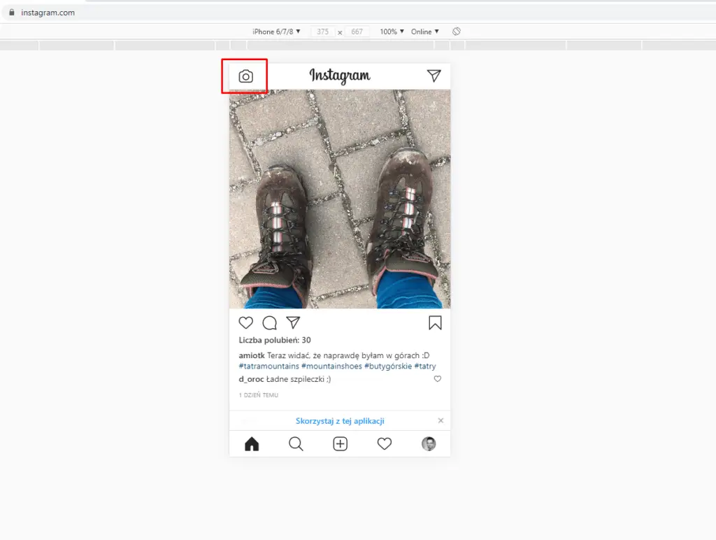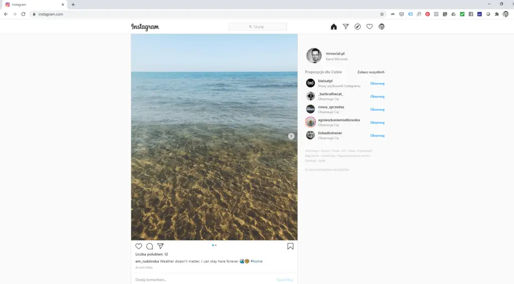 1) W nowej karcie przeglądarki otwórz adres Instagram.com. Jeżeli nie jesteś zalogowany – zaloguj się.
